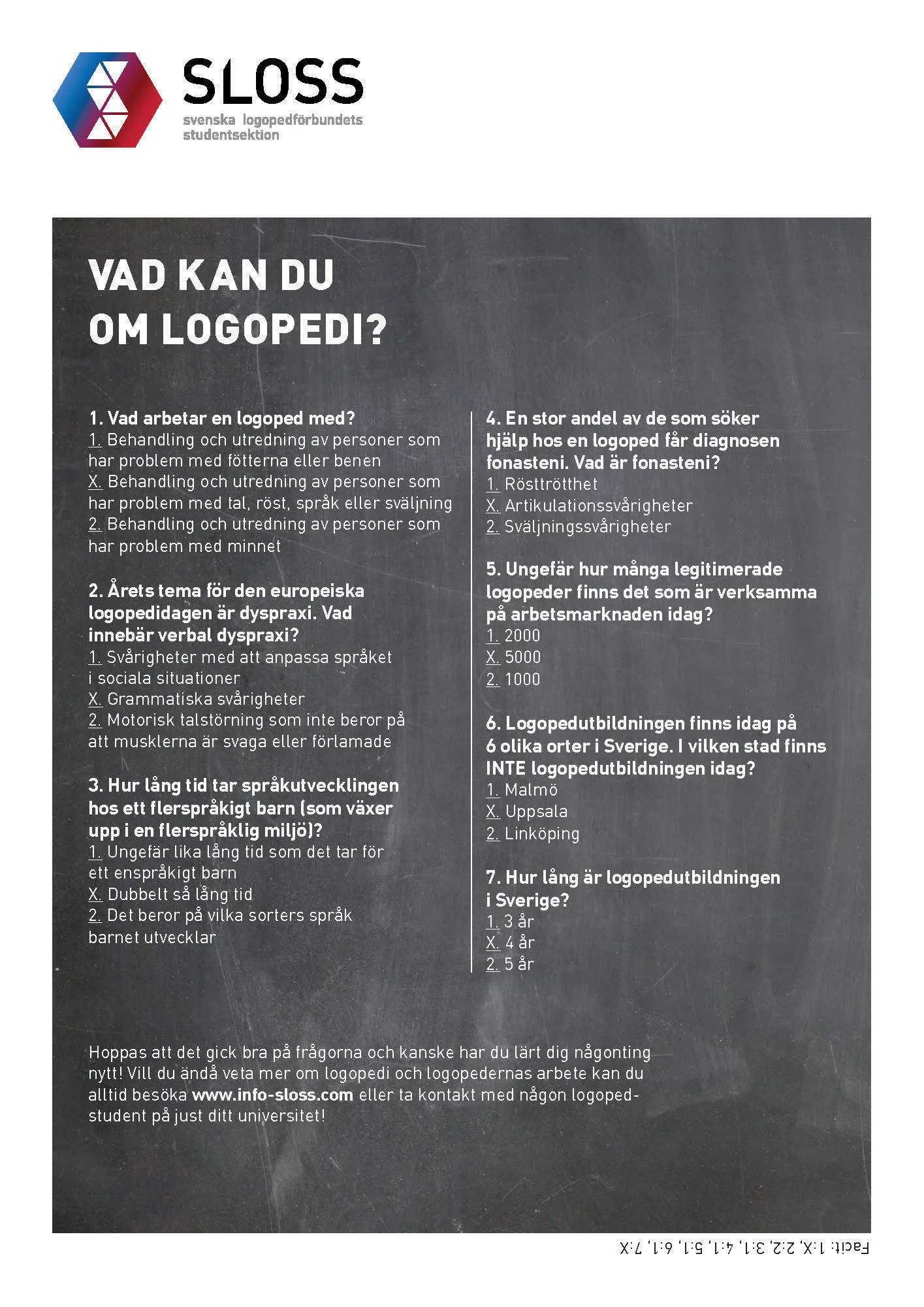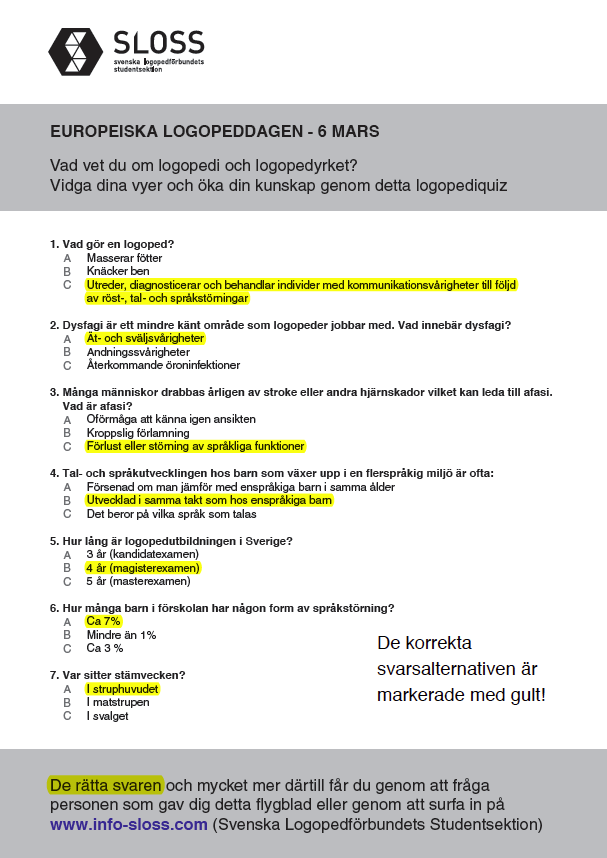 - Den 6/3 kommer studenterna i Lund kommer stå och informera om logopedi, dysfagi, SLOSS och SLOF på BMC